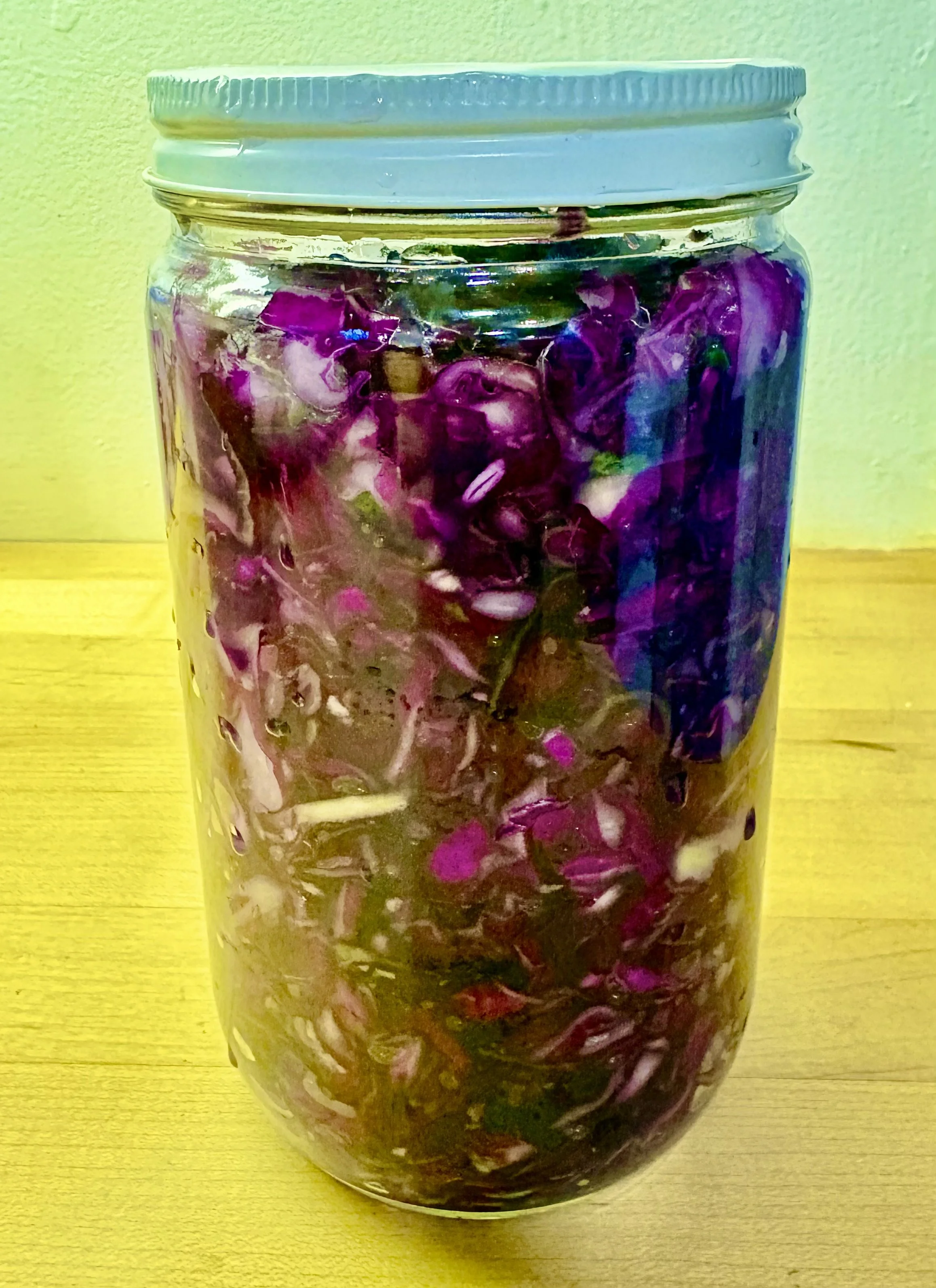 Cover with lid and leave out on the counter for about 2-3 weeks. Taste to see if it is fermented, refrigerate and have a bite before each meal.
