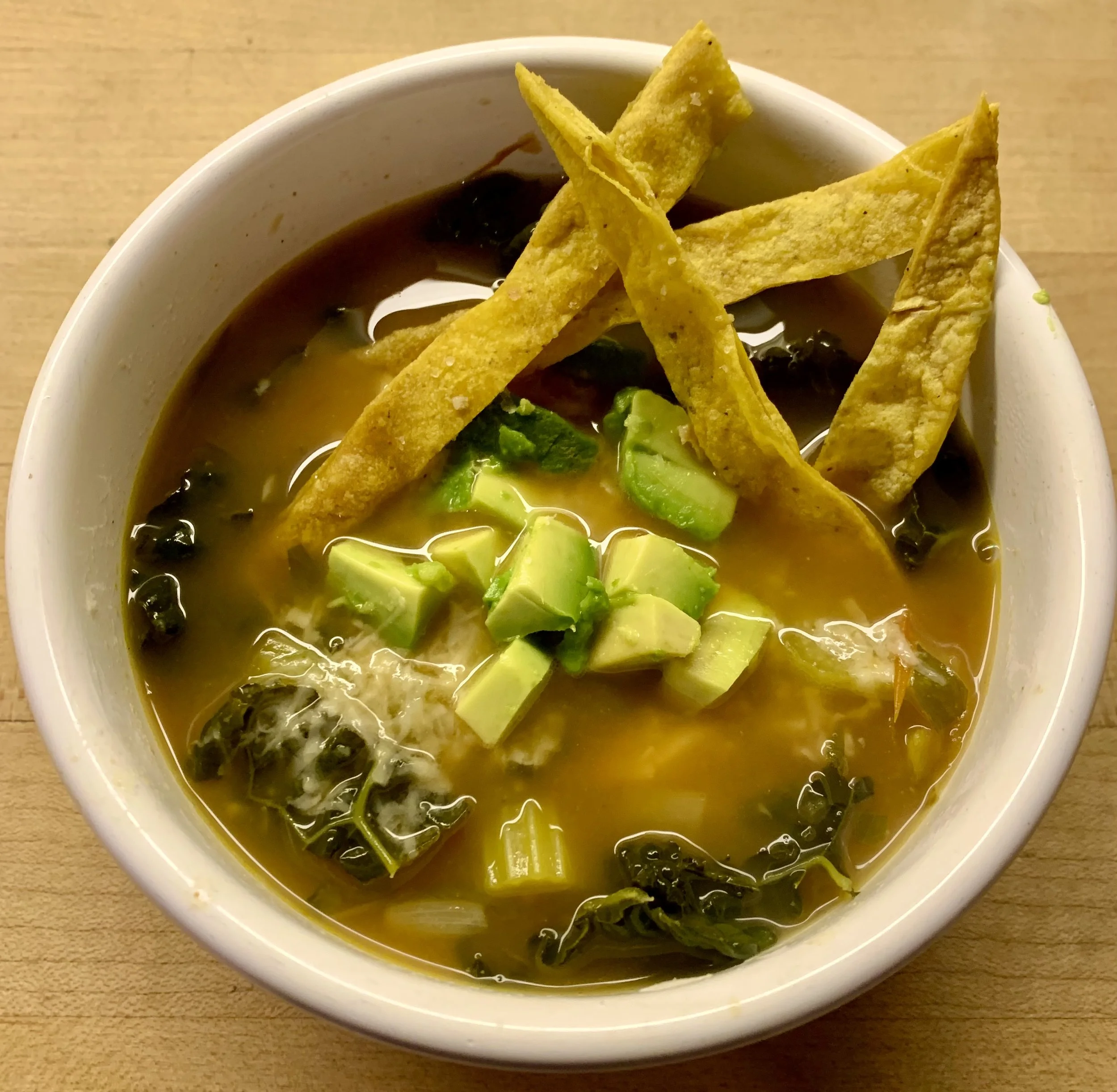 Serve each bowl of soup topped with cheese, avocado and tortilla strips.