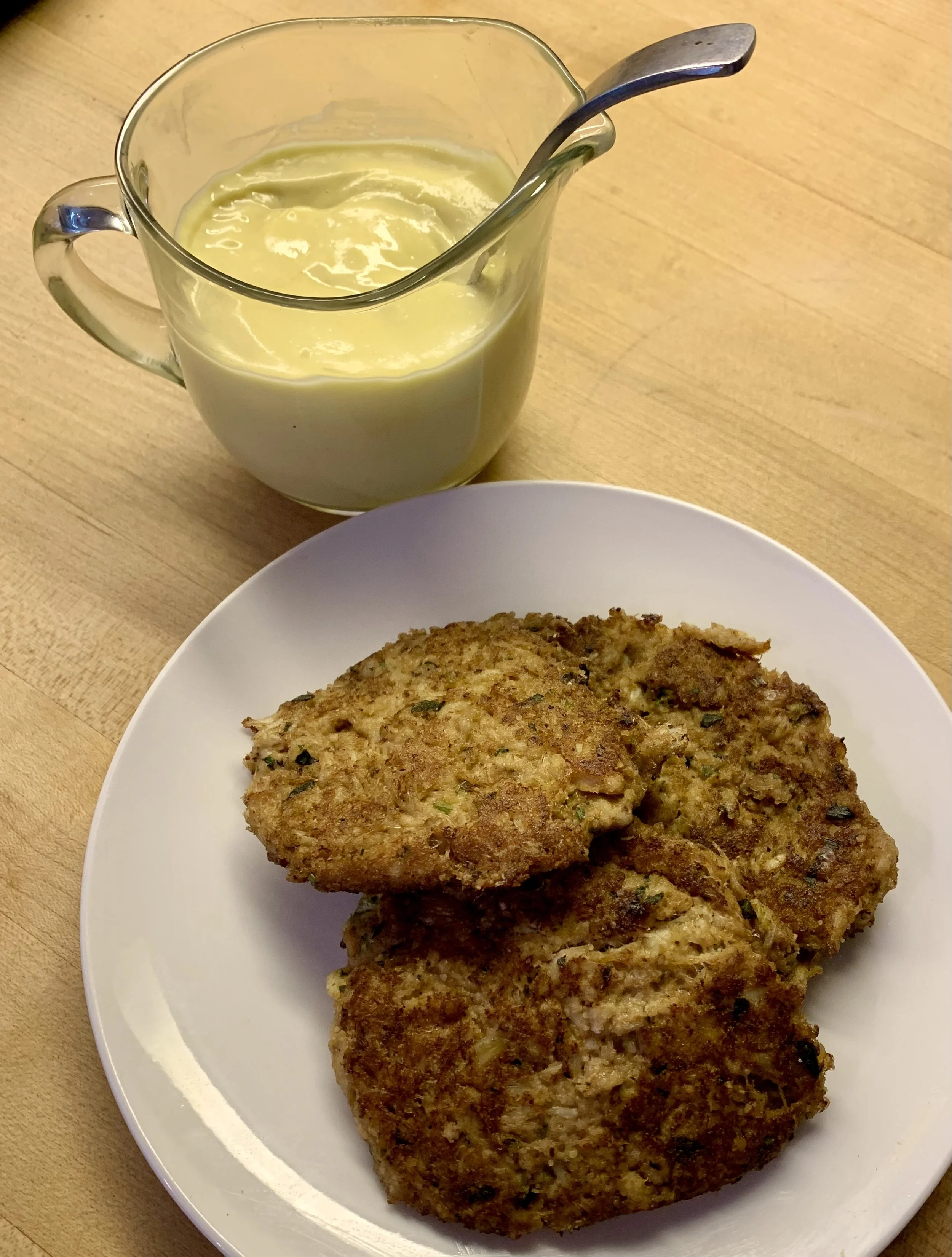 Crab cakes are a light, nutritious protein source with high levels of omega 3 fatty acids, B12 and selenium. It is also low in calories.