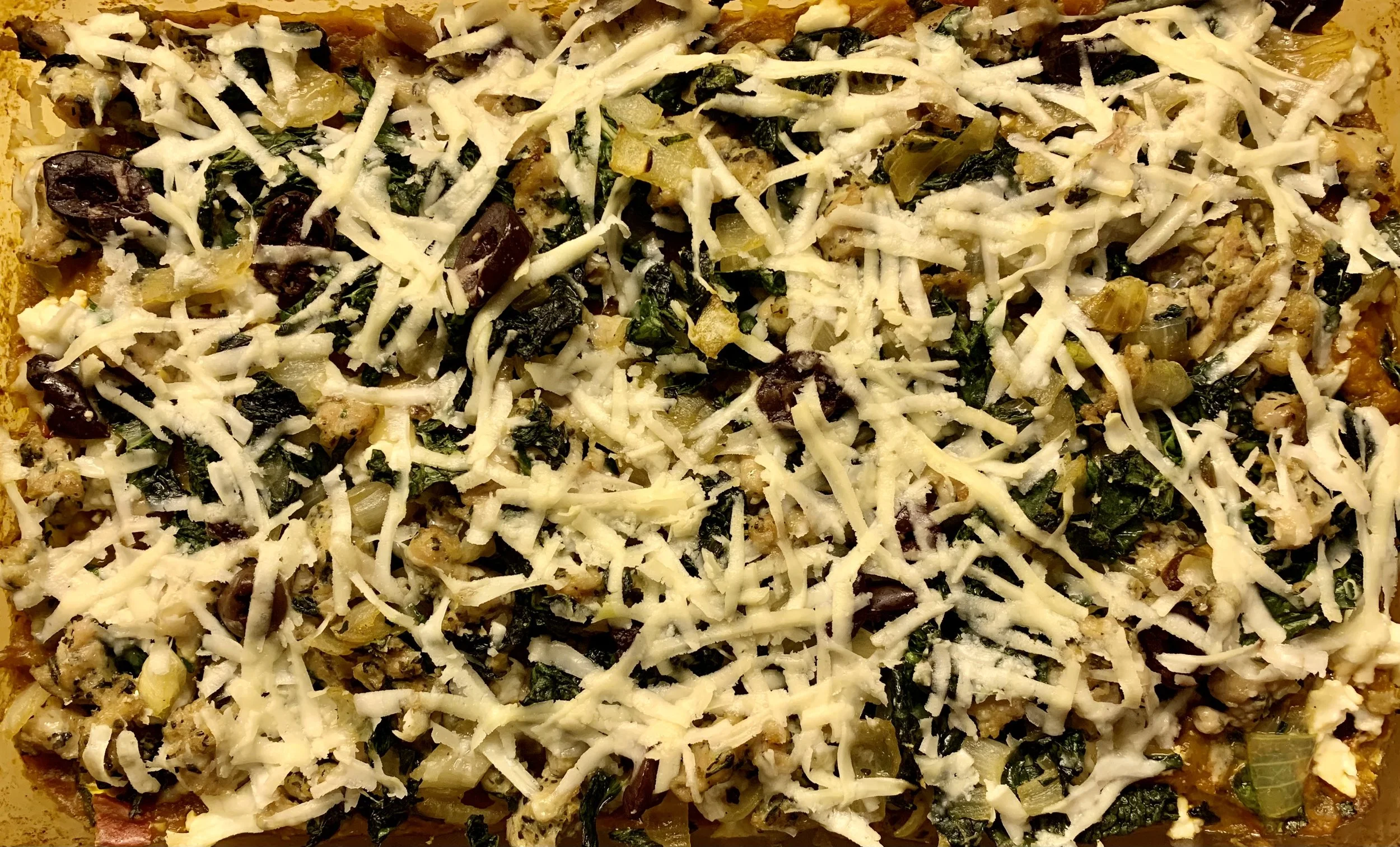 Repeat another layer from #7 but sprinkle with parmesan instead of feta for the top layer.